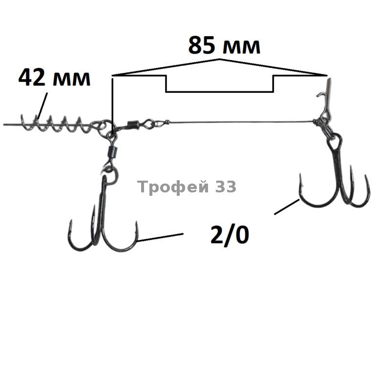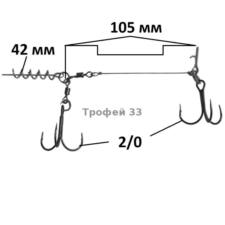 Стингер для приманок 12-15 см, крючки 1/0